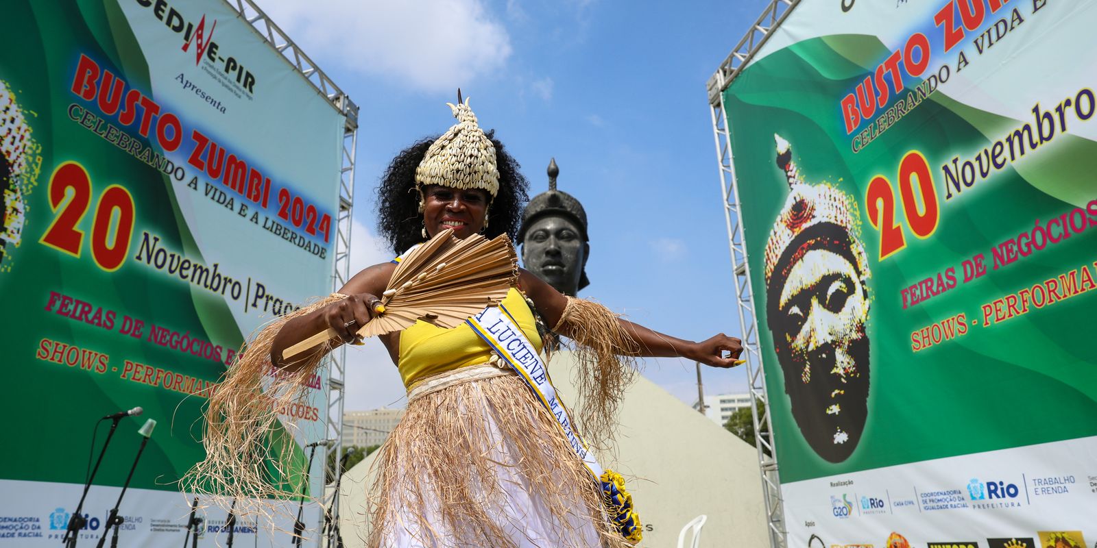 Aos pés do busto gigante do herói negro, a atenção maior era para os atabaques, cantos e danças de origem afro, que deram o tom de mais um dia de celebração da Consciência Negra. Entre as dançarinas, Lorena Bernardino, de apenas 9 anos, traduziu o que era a celebração.