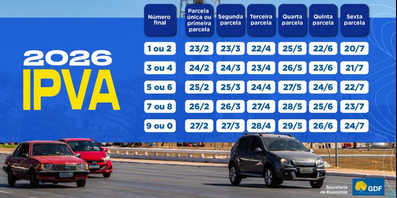 Tags: IPVA 2026, Distrito Federal, Secretaria de Economia DF, calendário IPVA, imposto sobre veículos